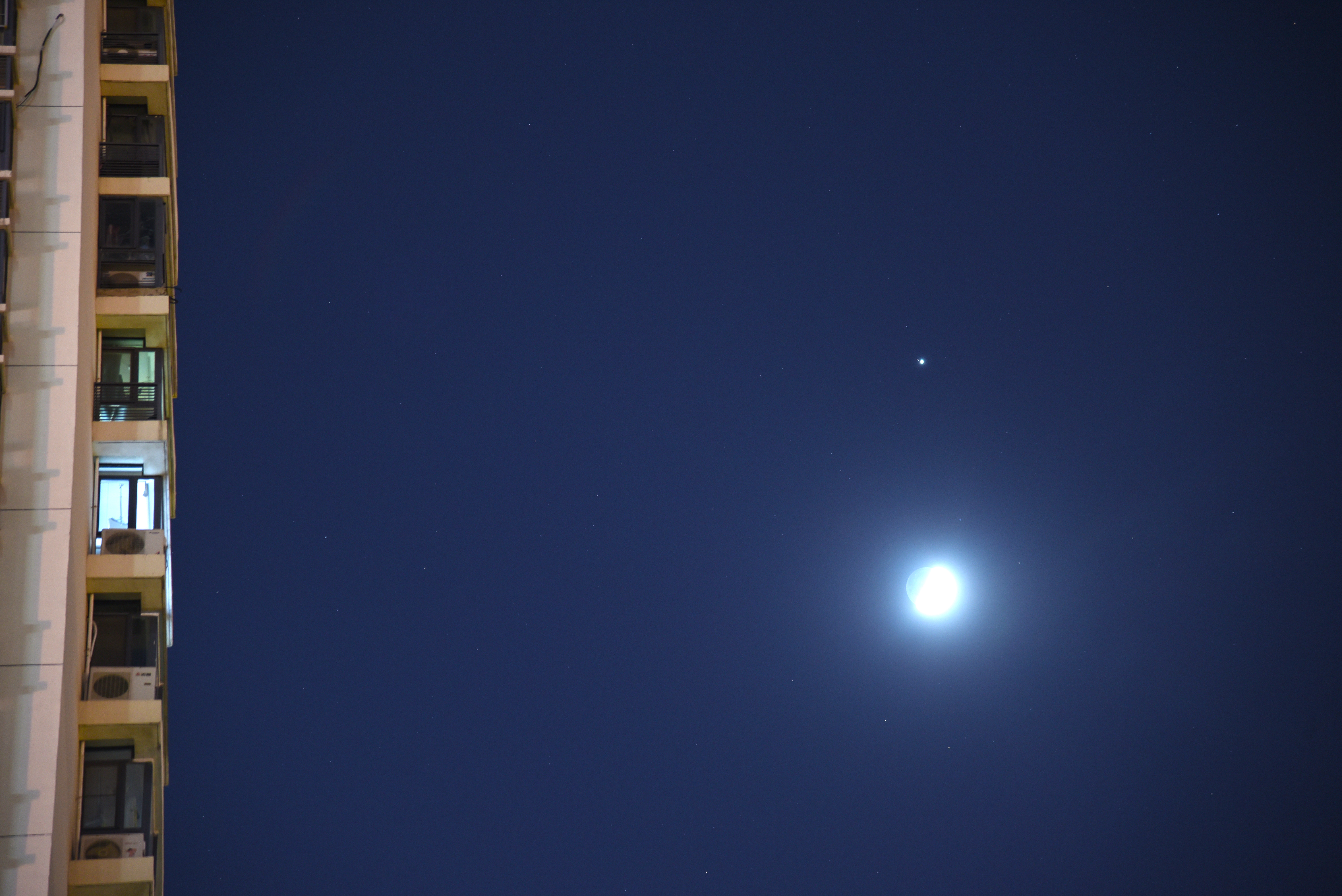 2023年12月22日,在天津西青区拍摄的木星伴月。(刘庆 摄)