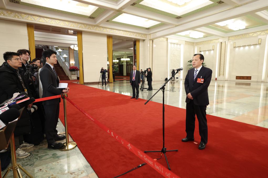 3月5日,第十四届全国人民代表大会第三次会议首场“部长通道”集中采访活动在北京人民大会堂举行。这是交通运输部部长刘伟接受媒体采访。新华社记者 吕帅 摄