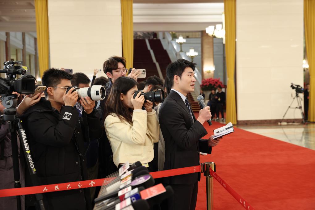 3月5日,第十四届全国人民代表大会第三次会议首场“部长通道”集中采访活动在北京人民大会堂举行。这是记者在现场提问。新华社记者 吕帅 摄