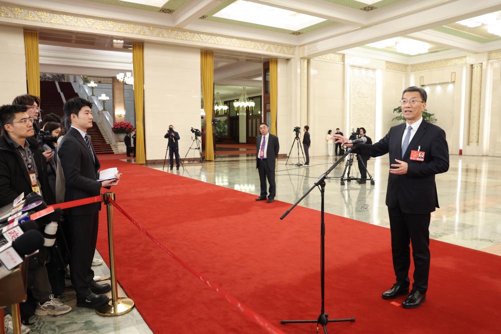 3月5日,第十四届全国人民代表大会第三次会议首场“部长通道”集中采访活动在北京人民大会堂举行。这是教育部部长怀进鹏接受媒体采访。新华社记者 陈晔华 摄