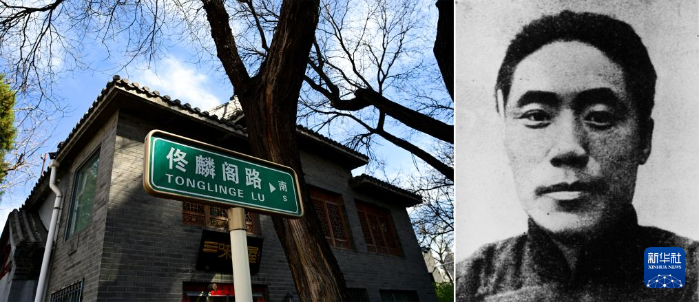 拼版照片:左图为北京市西城区佟麟阁路(新华社记者刘金海2025年3月25日摄);右图为佟麟阁像(资料照片)。新华社发