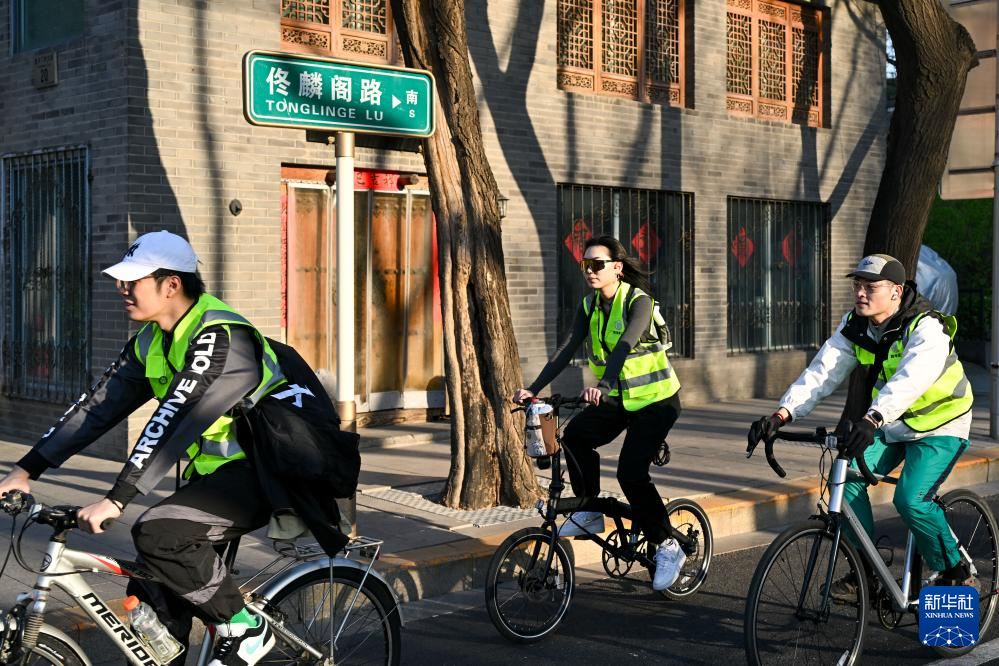 市民在北京市西城区佟麟阁路骑行(3月30日摄)。新华社记者 刘金海 摄