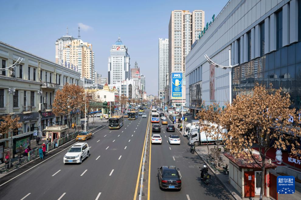 4月8日,在哈尔滨市道里区,车辆在尚志大街上行驶。新华社记者 谢剑飞 摄