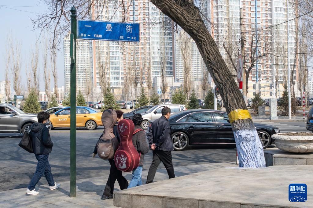 4月8日,人们走在位于哈尔滨市南岗区的一曼街上。新华社记者 谢剑飞 摄