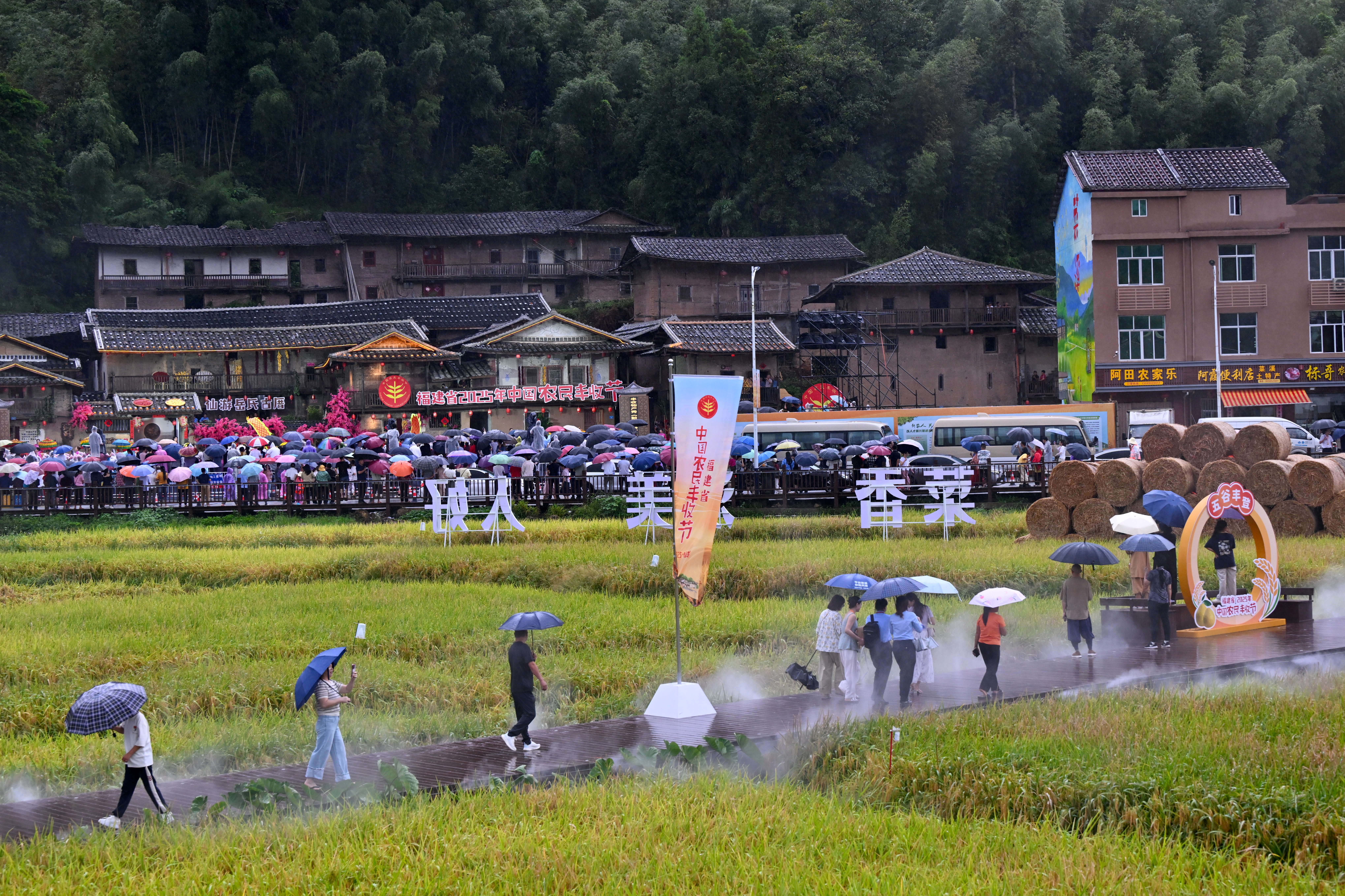 ↑9月23日,游客在福建省2025年中国农民丰收节主会场活动举办地莆田市仙游县菜溪乡象星村参观。新华社记者 姜克红 摄