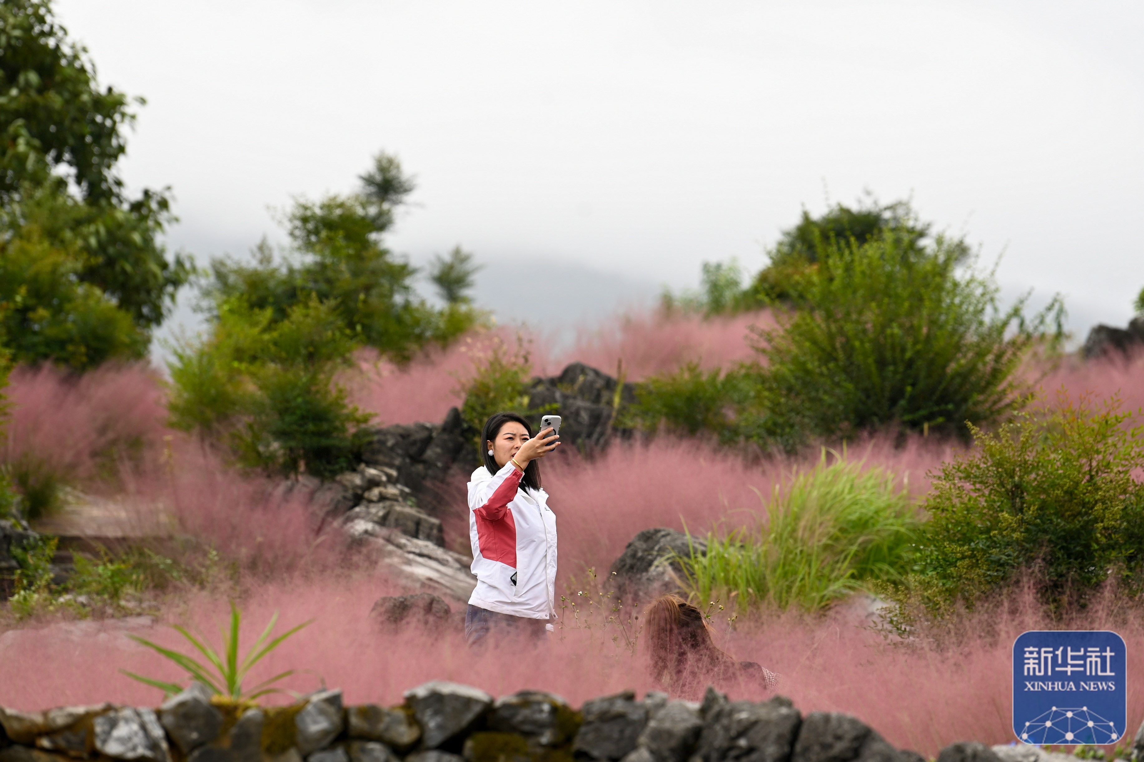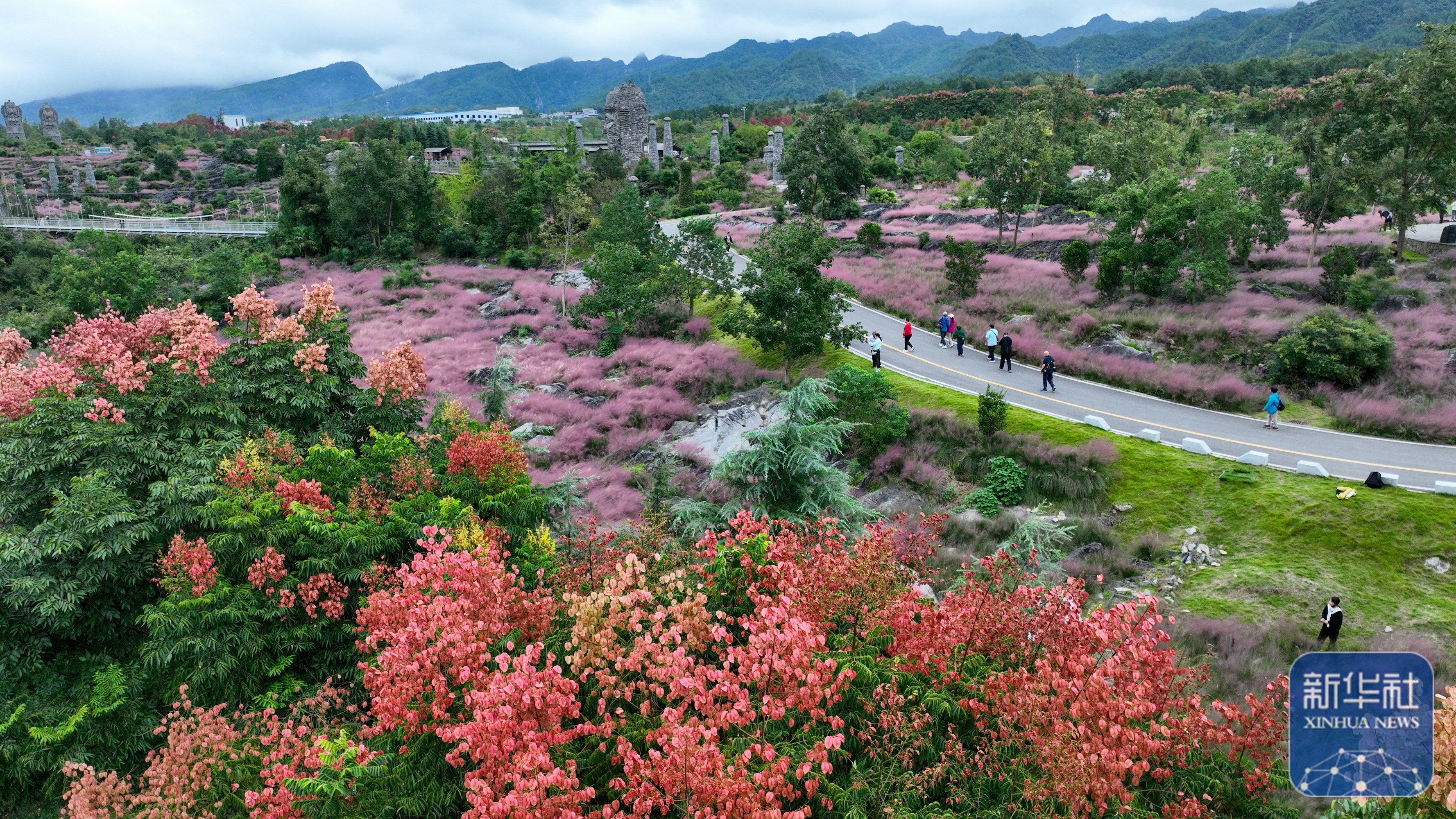 ↑ 9月26日,游客在重庆市酉阳土家族苗族自治县叠石花谷景区游玩拍照。新华社发(邱洪斌摄)