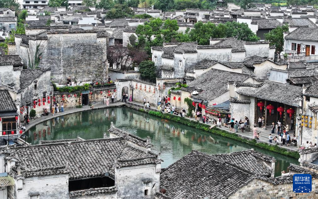 当日是国庆假期首日,世界文化遗产地安徽黄山西递宏村迎来大批游客,古朴典雅的徽派建筑和水乡美景让游人流连忘返。