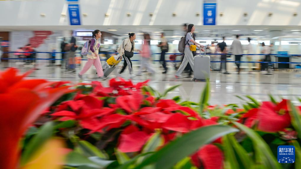 10月1日,旅客在昆明火车站乘车出行。新华社发(郑益摄)