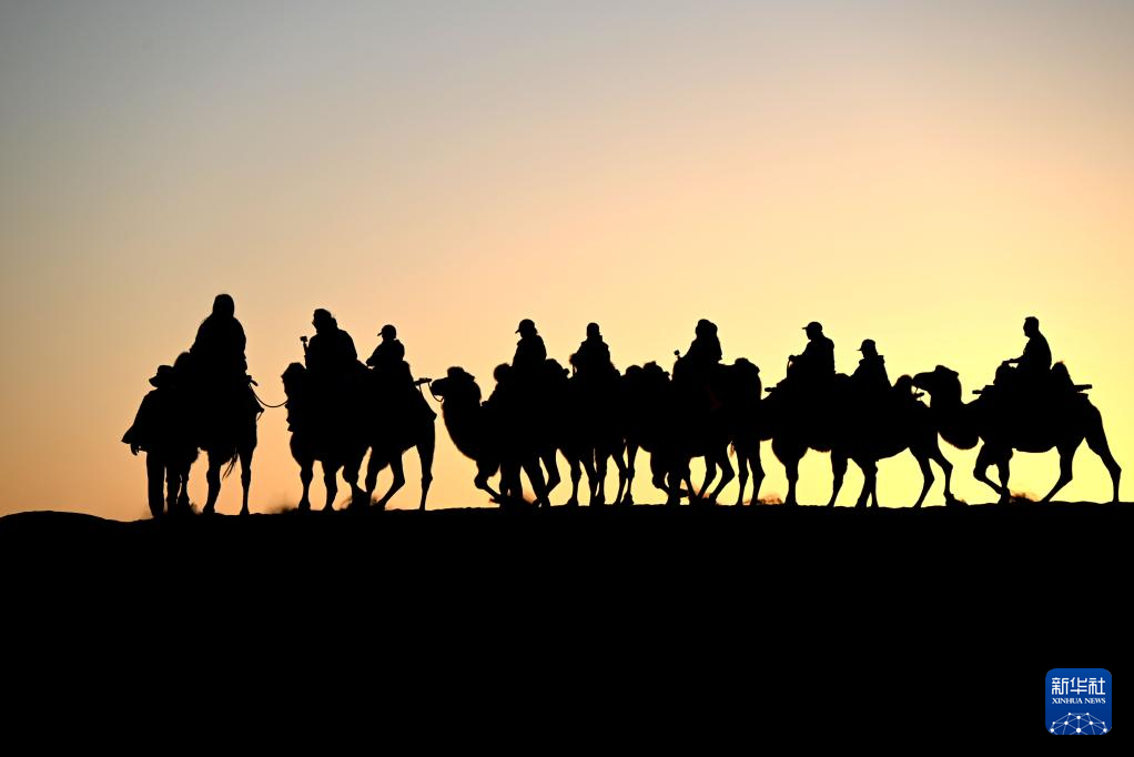 10月1日,游客在甘肃省敦煌市鸣沙山月牙泉景区游览。新华社发(张晓亮 摄)
