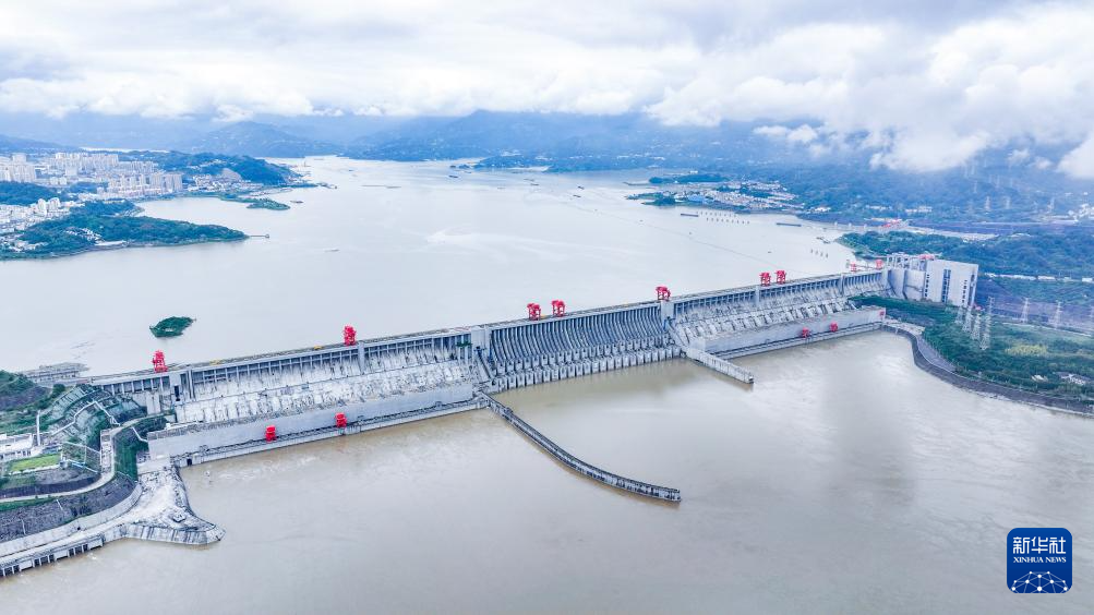 10月3日拍摄的三峡大坝(无人机全景照片)。新华社记者 陈晔华 摄
