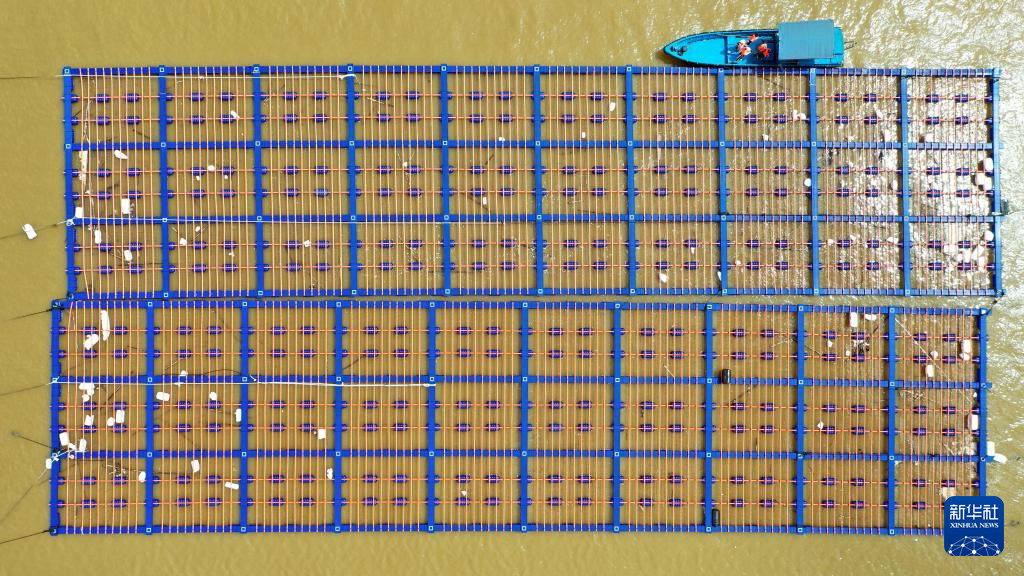 10月7日,当地群众在检查蚝排是否受损(无人机照片)。新华社记者 张爱林 摄