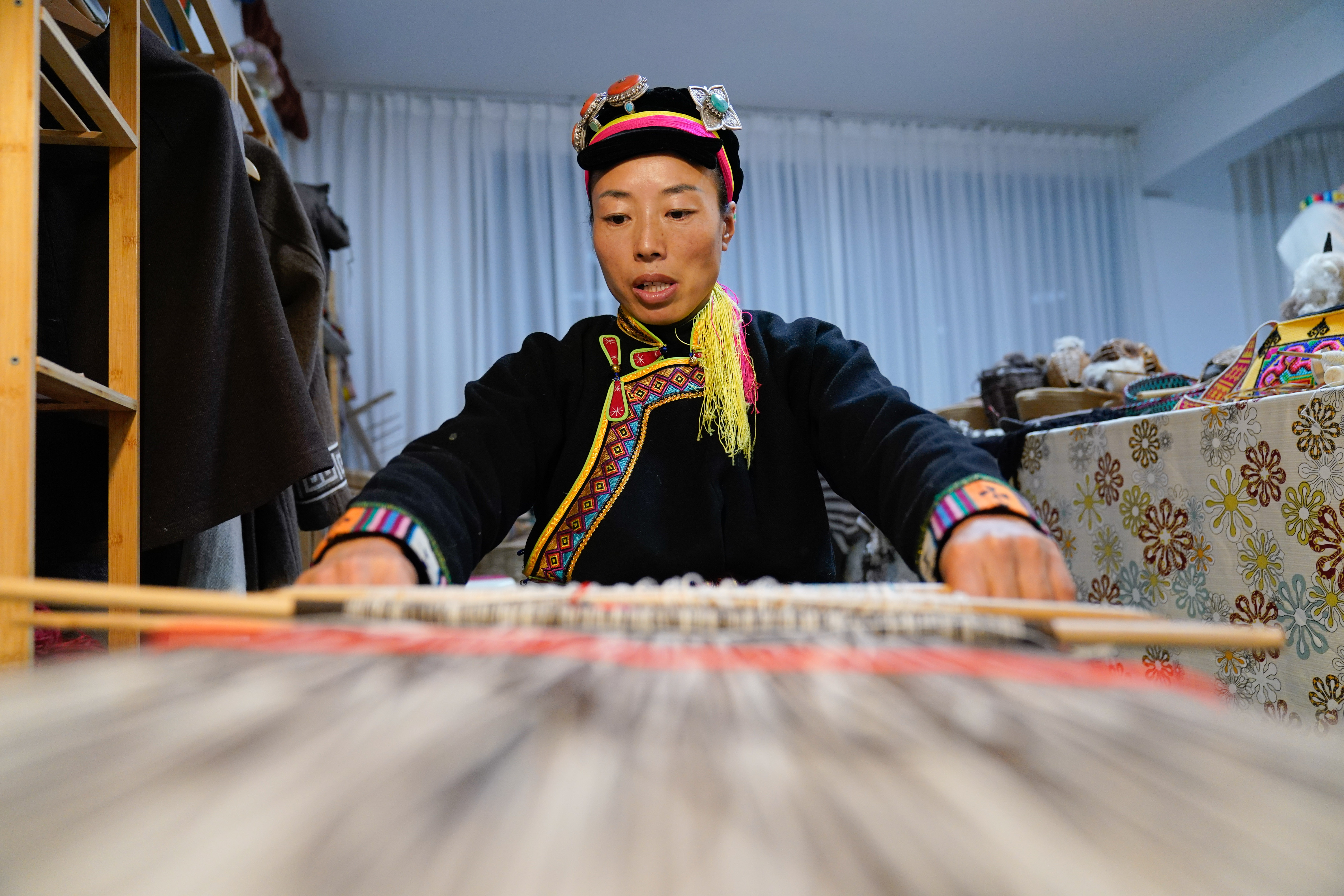 2016年,她创立能卡曼纺织手作工作室,利用传统技艺,结合创新设计,制作背包、围巾、腰带等手工艺品,并参加集市、开展线上销售。随着订单变多,能卡曼把订单分享给村里的妇女,大家在农闲时也多了一份收入。目前已有50余名妇女在能卡曼的带动下实现灵活就业,人均年收入3千至3万元不等。