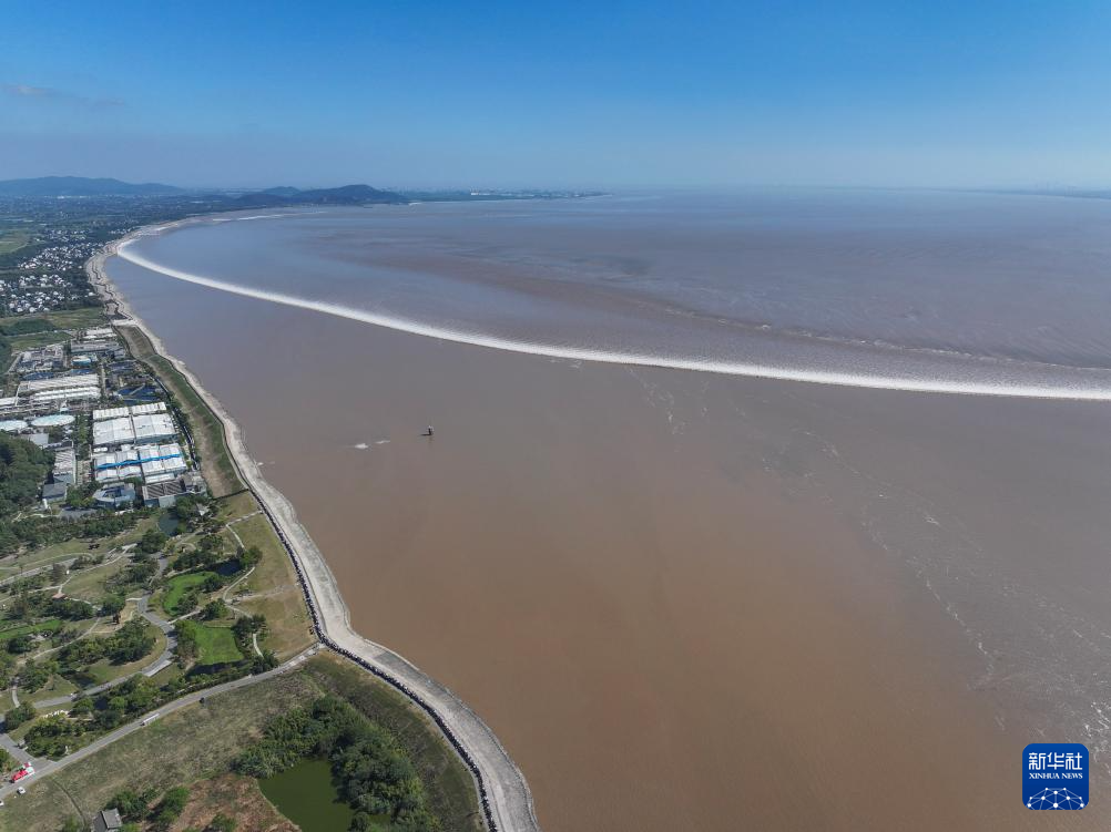 10月10日拍摄的钱塘江大潮(无人机照片)。新华社记者 徐昱 摄
