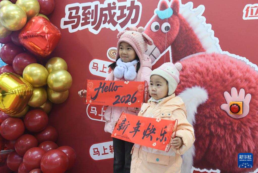 1月25日,小朋友在河北省石家庄新乐市一家超市免费拍摄照片。新华社发(贾敏杰摄)