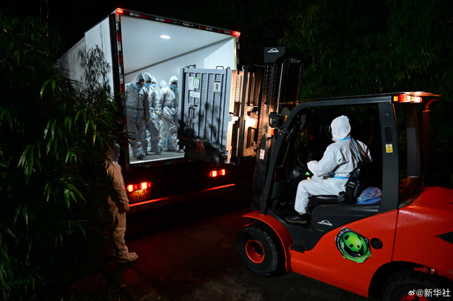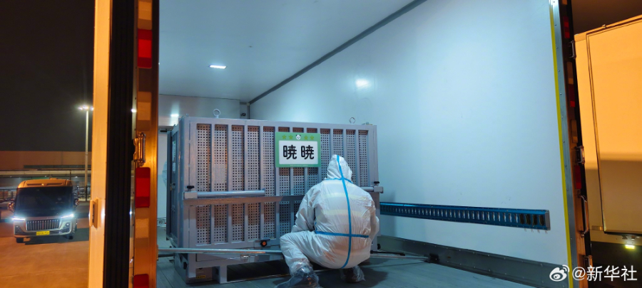1月28日1时,我国旅居日本东京都恩赐上野动物园的大熊猫“晓晓”“蕾蕾”平安飞抵成都天府国际机场,随后于6时,顺利入住中国大熊猫保护研究中心雅安基地,接受隔离检疫。(记者:余里 薛晨 胥冰洁)