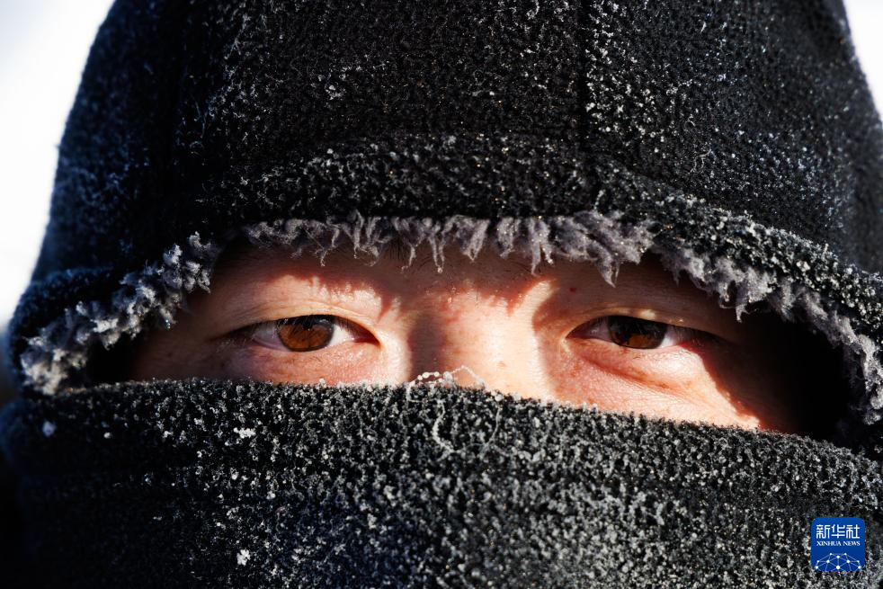 1月25日,户外作业不久,漠河站的工程师李强的帽子已凝结白霜。新华社记者 金立旺 摄