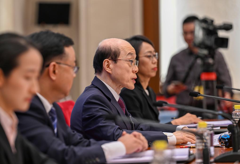 3月3日,全国政协十四届四次会议新闻发布会在北京人民大会堂举行。大会新闻发言人刘结一向中外媒体介绍本次大会有关情况并回答记者提问。新华社记者 陈晔华 摄