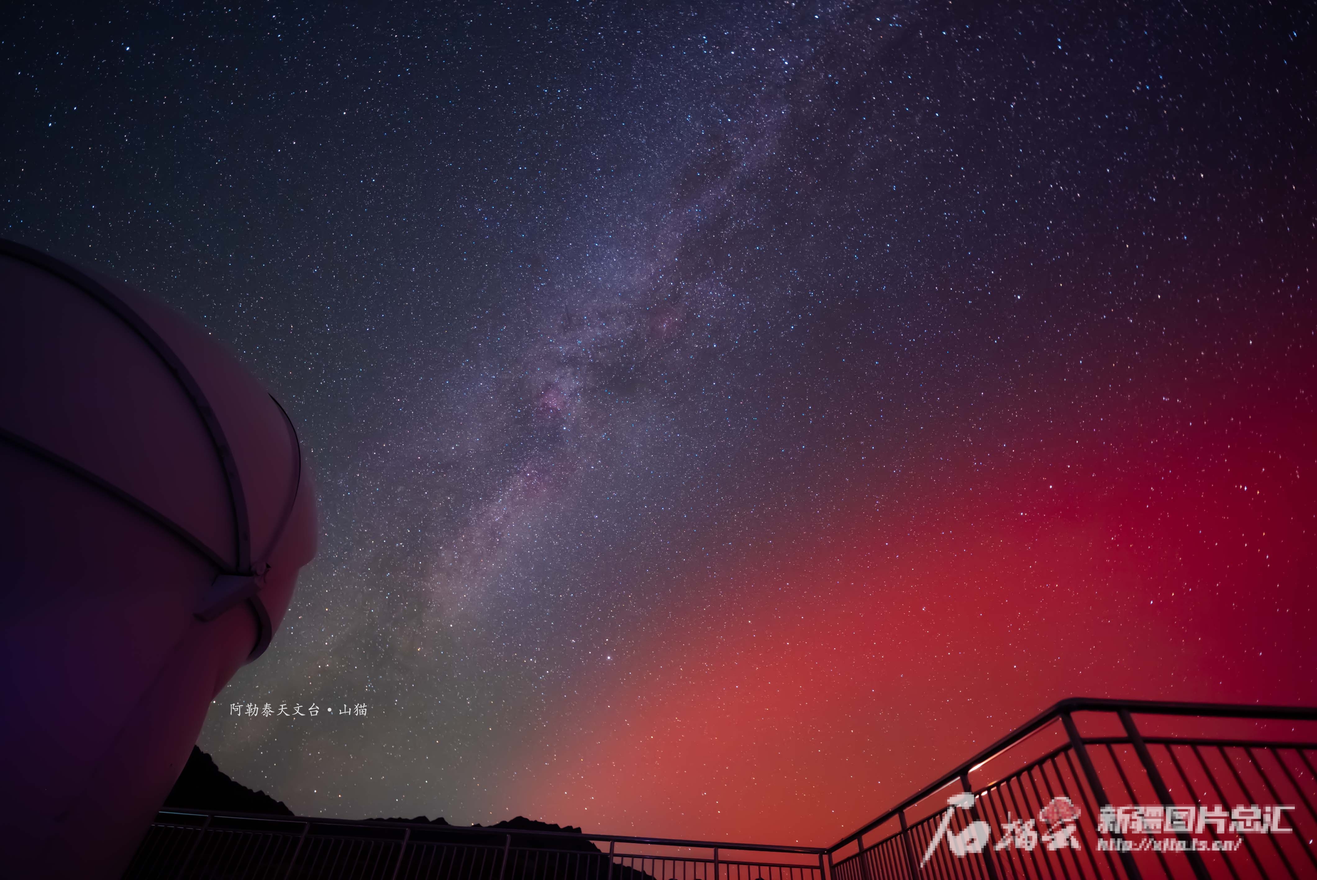 据阿勒泰天文台星际探索天文科技公司山猫介绍,此次极光强度不大,13日凌晨1时许开始出现,肉眼看着不是很清楚。持续到4时左右,肉眼也能看到朦胧的红光,与漫天银河交会,难得一见。