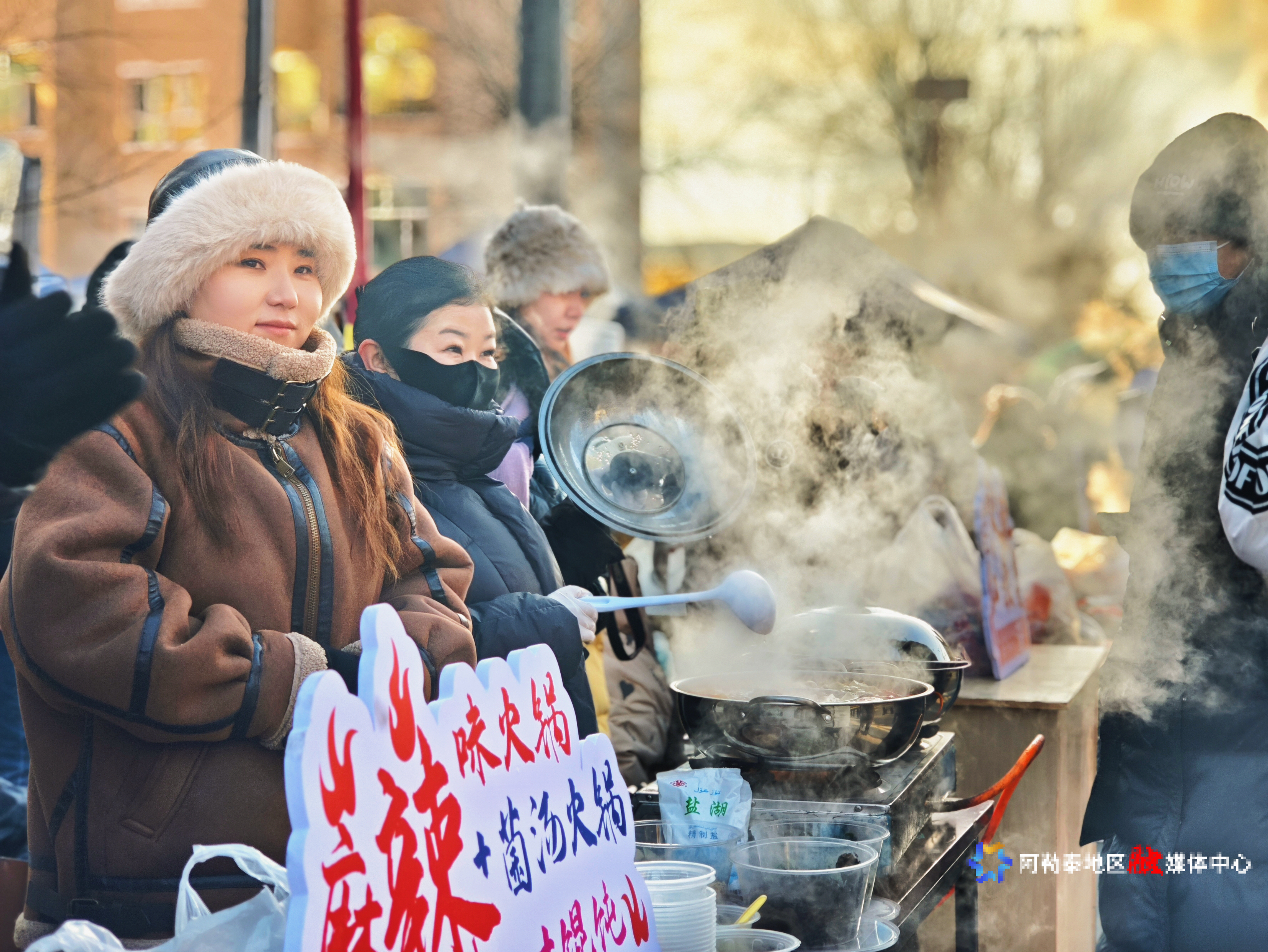 在阿勒泰市红墩镇,每逢赶集日,新鲜的牛羊肉、香气四溢的羊杂汤、晶莹剔透的冰糖葫芦、刚出锅的包子……这些美食与此伏彼起的吆喝声、讨价还价声交织在一起,构成了大集独有的热闹景象。人们对烟火气的追随是一种天性,而大集是最能提供这种气息的代表性场所。