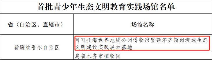 阿勒泰1单位入选全国首批青少年生态文明教育实践场馆