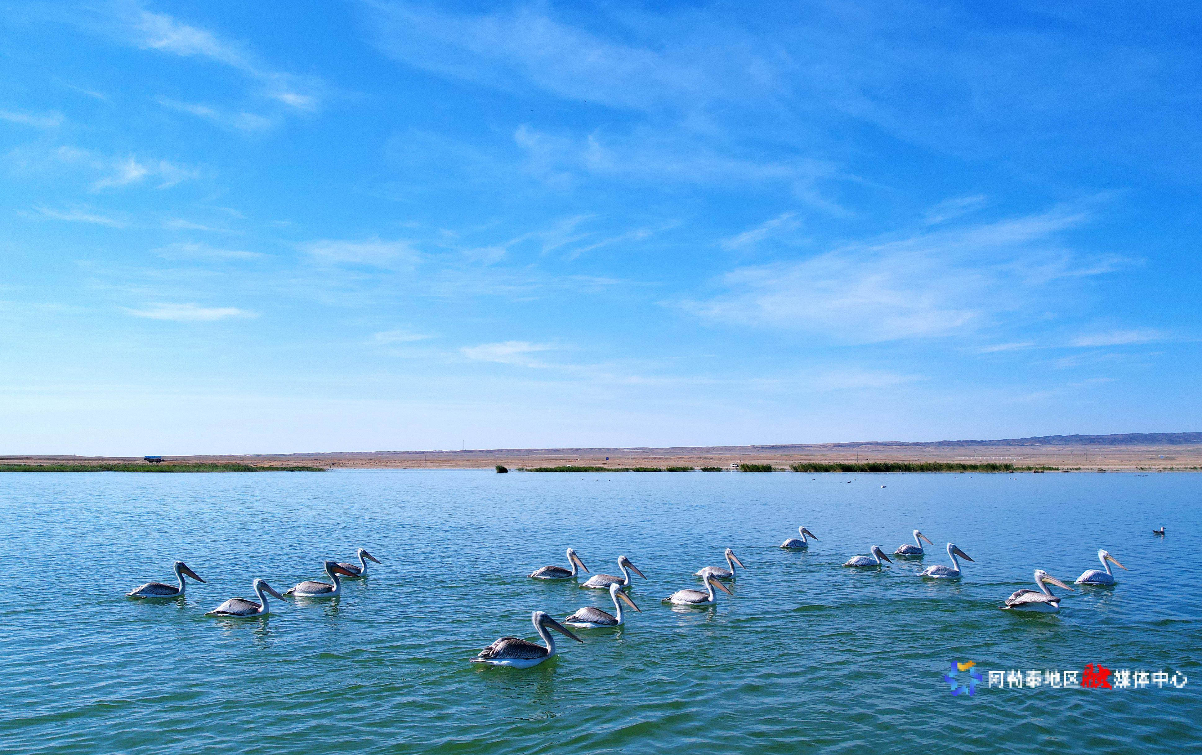阿勒泰新闻网-阿勒泰地区融媒体中心(记者 阿尔达克·拜斯汗)9月18日,国家一级重点保护野生动物卷羽鹈鹕在乌伦古湖国家湿地公园觅食嬉戏。