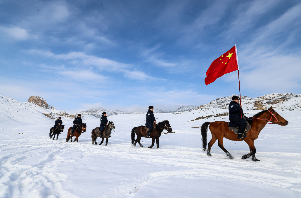 连日来,新疆阿勒泰地区持续降雪,气温骤降。12月9日,新疆出入境边防检查总站阿勒泰边境管理支队阿热勒边境派出所民警组建“马上巡逻分队”,民警克服严寒天气、自然环境恶劣等条件,对降雪后的边境前沿地带、重要山口要道、无人区等地段进行巡查,及时掌握边境前沿动态,确保边境一线安全稳定。