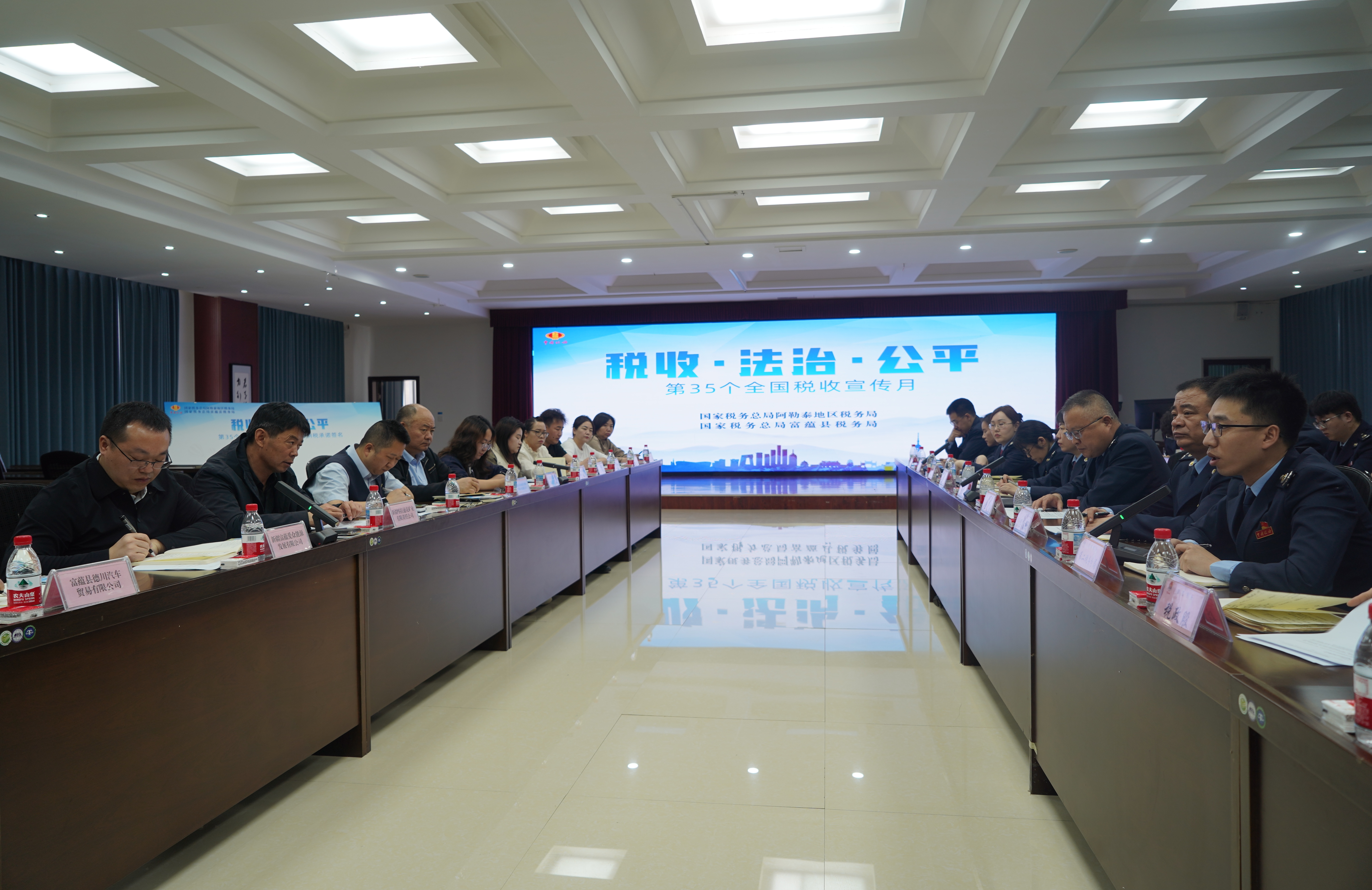新疆农村商业银行股份有限公司富蕴县支行、新疆金宝矿业有限责任公司两家纳税信用A级企业现场分享依法诚信纳税经验,为辖区企业树立诚信经营标杆。