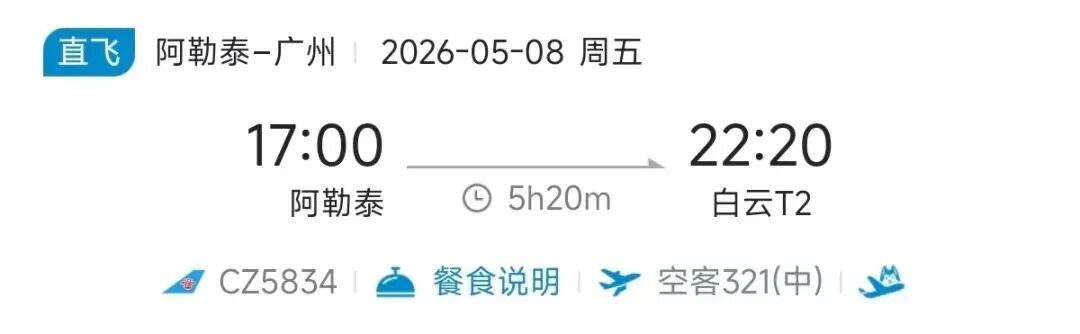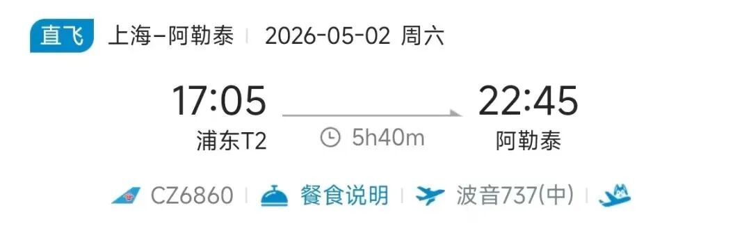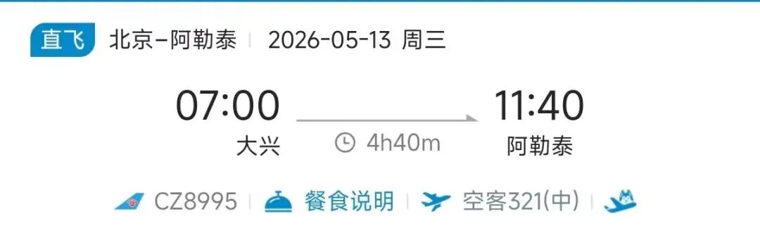 去程航班10:50从阿勒泰起飞