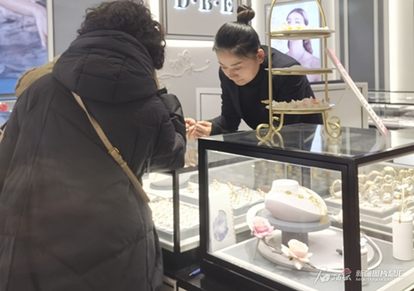 1月5日,在乌鲁木齐市天山万科广场一家黄金首饰店,顾客用旧款首饰换新款。石榴云/新疆日报记者 马蓓摄