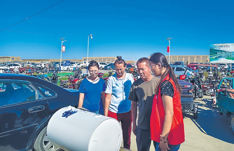 8月13日,塔城市“2024年家电促消费和以旧换新补贴活动”启动仪式上,市民在了解家用电器以旧换新相关事宜。代姣美摄