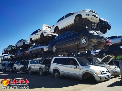 9月4日,在新疆皖新盛业金属制品有限公司报废汽车储存区等待拆解的车辆。 记者李宁艳摄