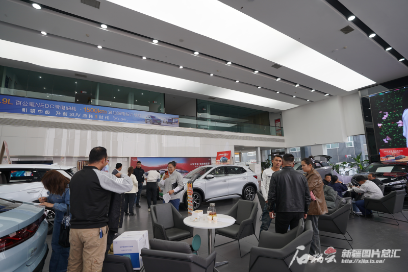 温宿县大新汽车城的一家汽车4S店,随处可见的“以旧换新”优惠信息,吸引了不少群众前来试乘试驾。阿依努尔·阿布都外力 摄