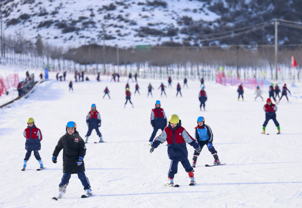 2024年12月25日,在位于乌鲁木齐县的新疆白云国际滑雪场,乌鲁木齐县永丰中学的学生在上滑雪课。新华社记者 王菲 摄