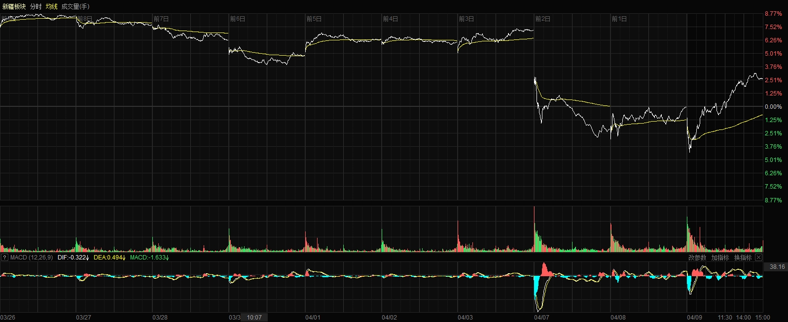 8.财联社:4月9日消息,美债的抛售行情在周三亚洲时段进一步出现了愈演愈烈之势。行情数据显示,30年期美债收益率目前已直线蹿升“破5”,日内极其夸张地一度暴涨25个基点至5.010%,创下了2023年末以来最高水平。知名财经博客网站Zerohedge认为,未来48小时两场美债标售的结果,以及美联储是否会紧急干预,可能是美国近代史上金融系统命运最重要的时刻。