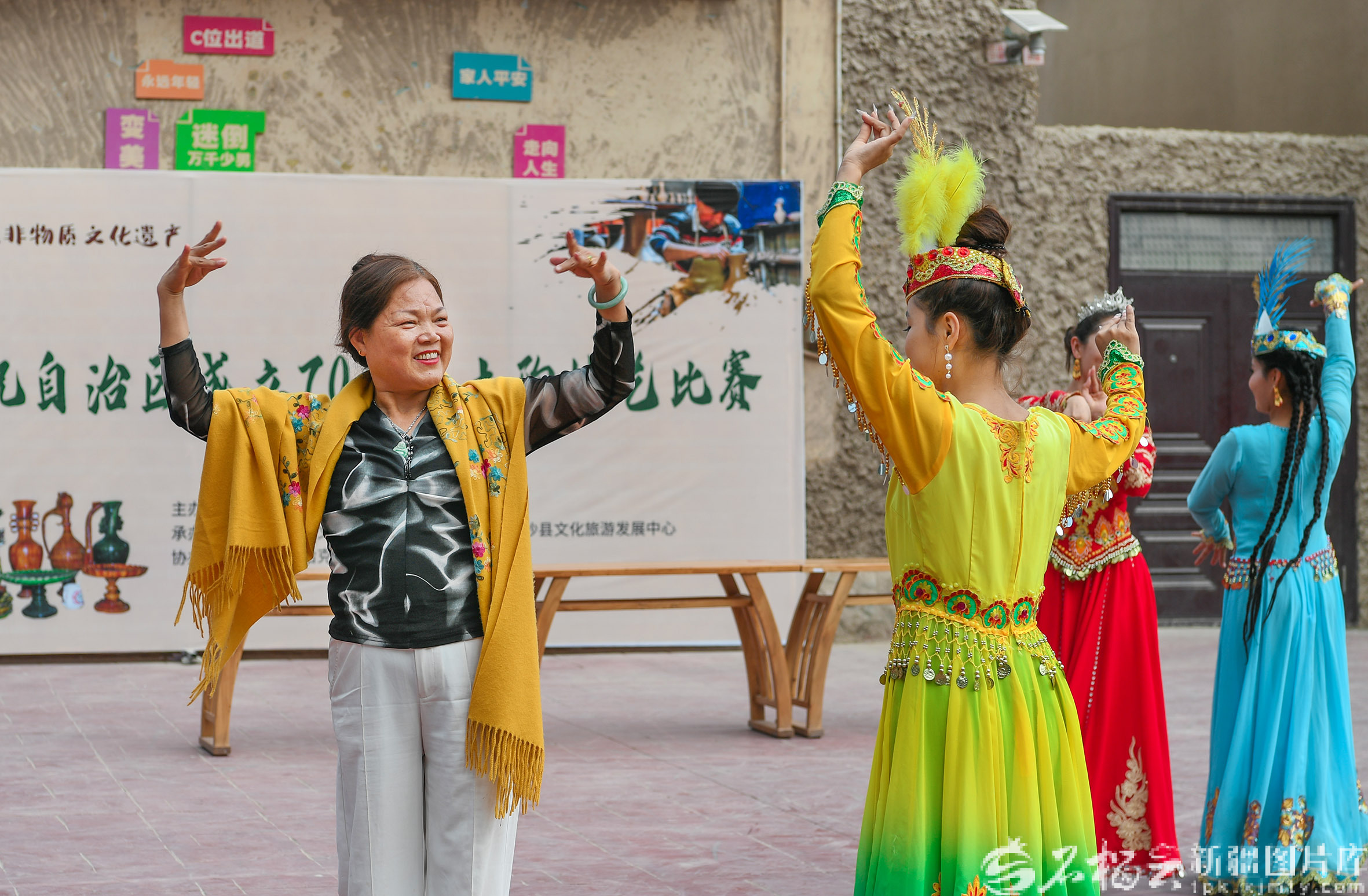 9月19日,游客在英吉沙县土陶村和村民一同跳起欢快的舞蹈。天山网-新疆日报记者 约提克尔·尼加提摄