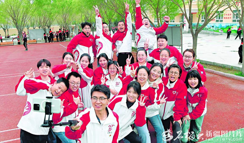 4月21日,阿图什市哈拉峻乡谢依特小学戍边支教西部计划志愿者服务队队员一起合影。天山网-新疆日报记者韩亮摄