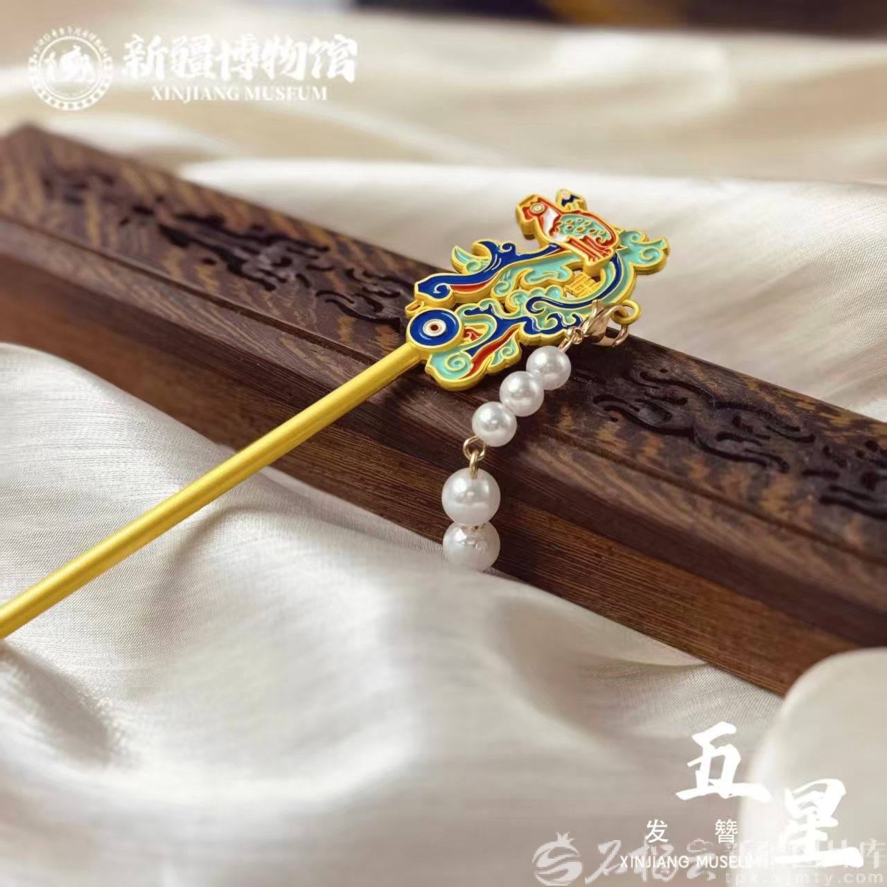 目前,新疆博物馆已开发出丝巾、笔记本、织锦镜等20余款“五星出东方”系列文创。这次的发簪,是团队对“小而美”文创的新探索。