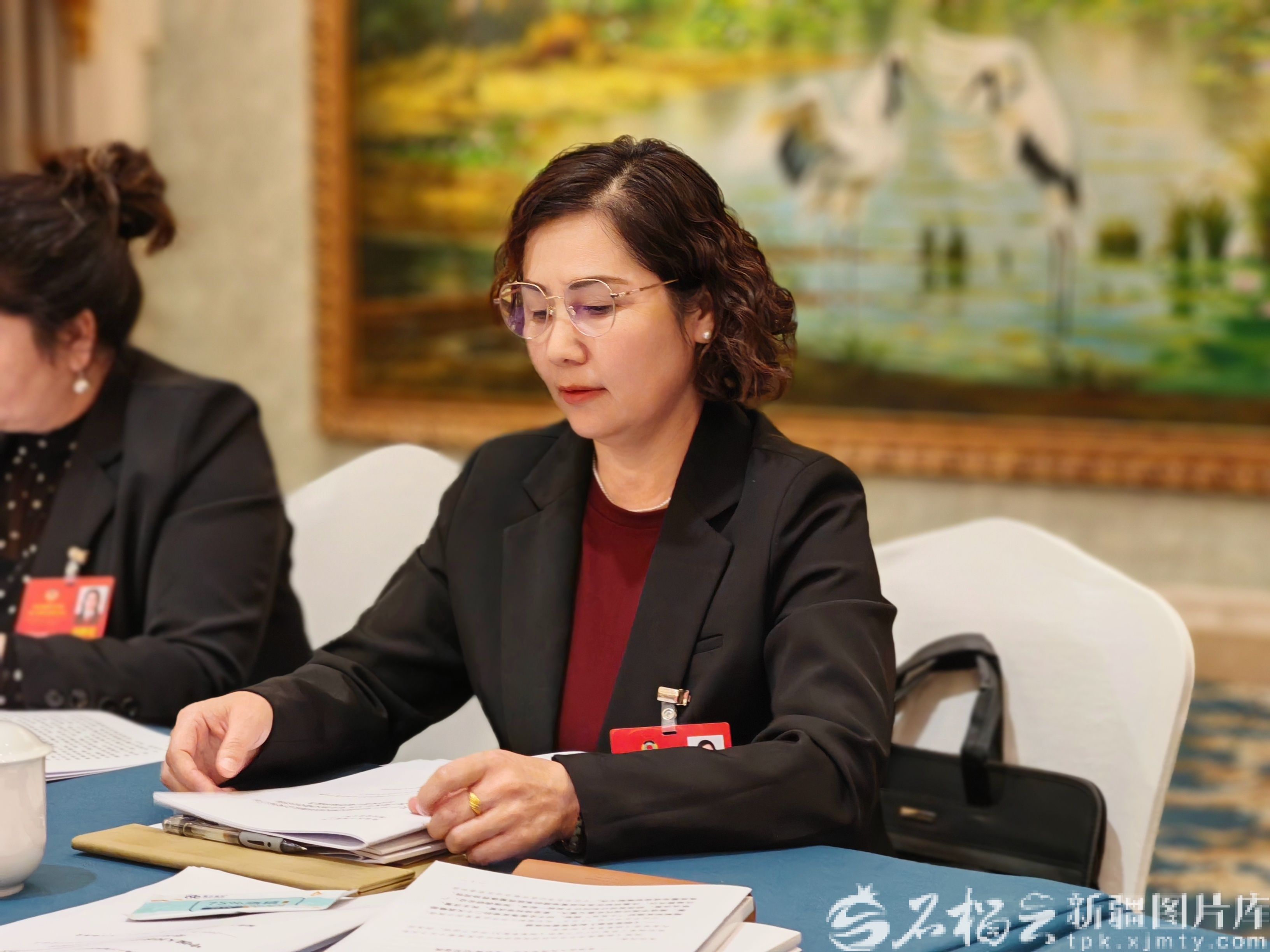 1月26日下午,阿依古丽·艾班参加自治区政协十三届四次会议小组会议。石榴云/新疆日报记者 隋云雁摄