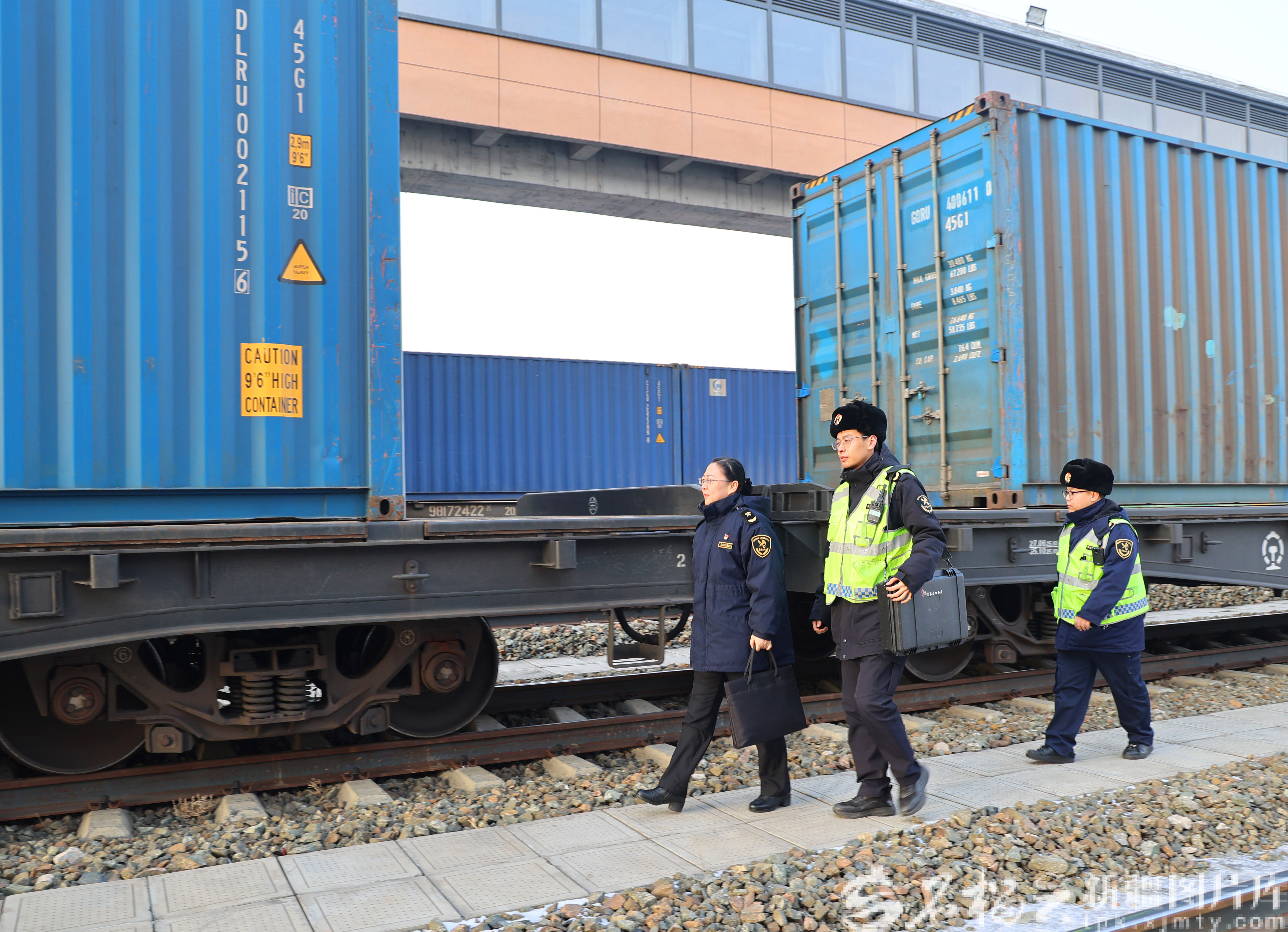 2月26日,李兰在阿拉山口铁路综合查验场调研。格日乐图 摄