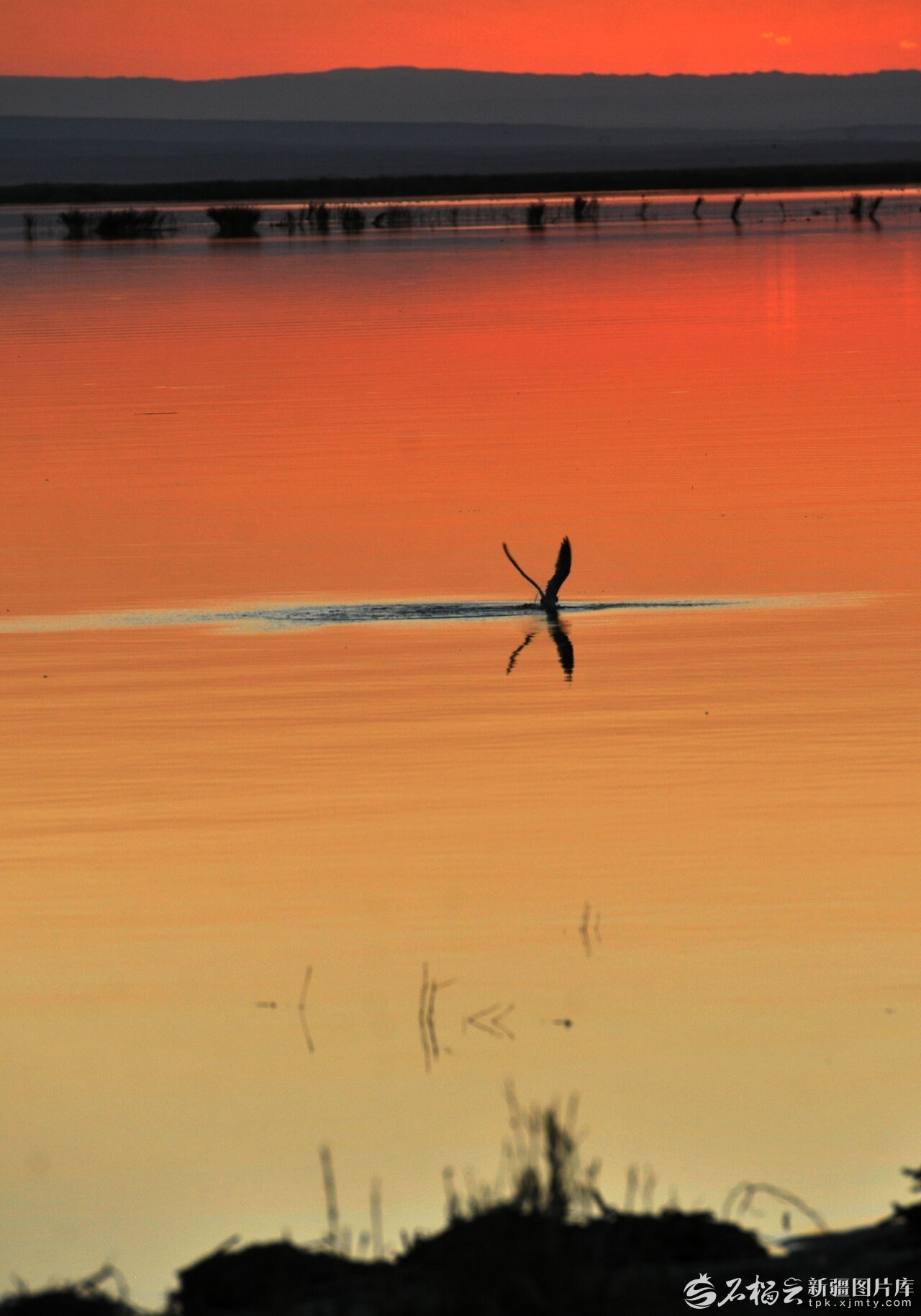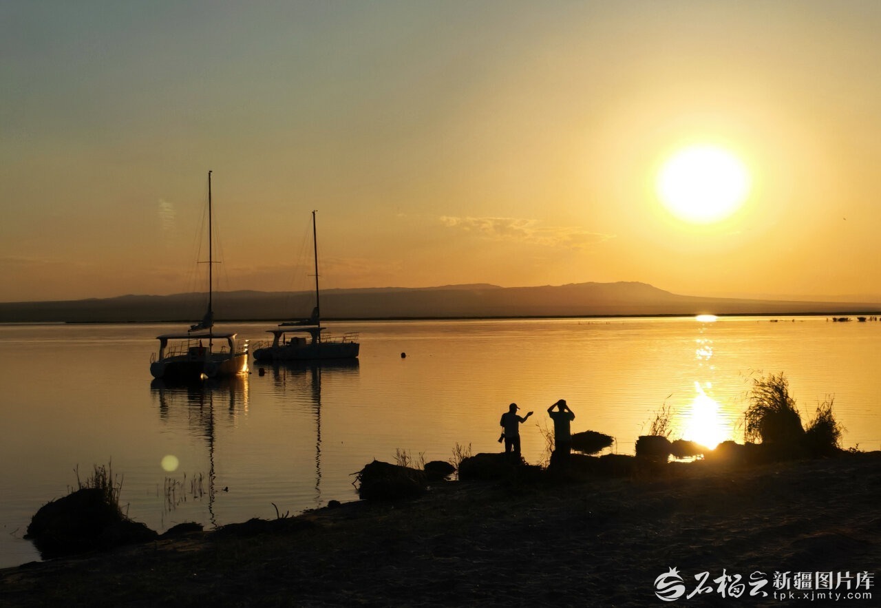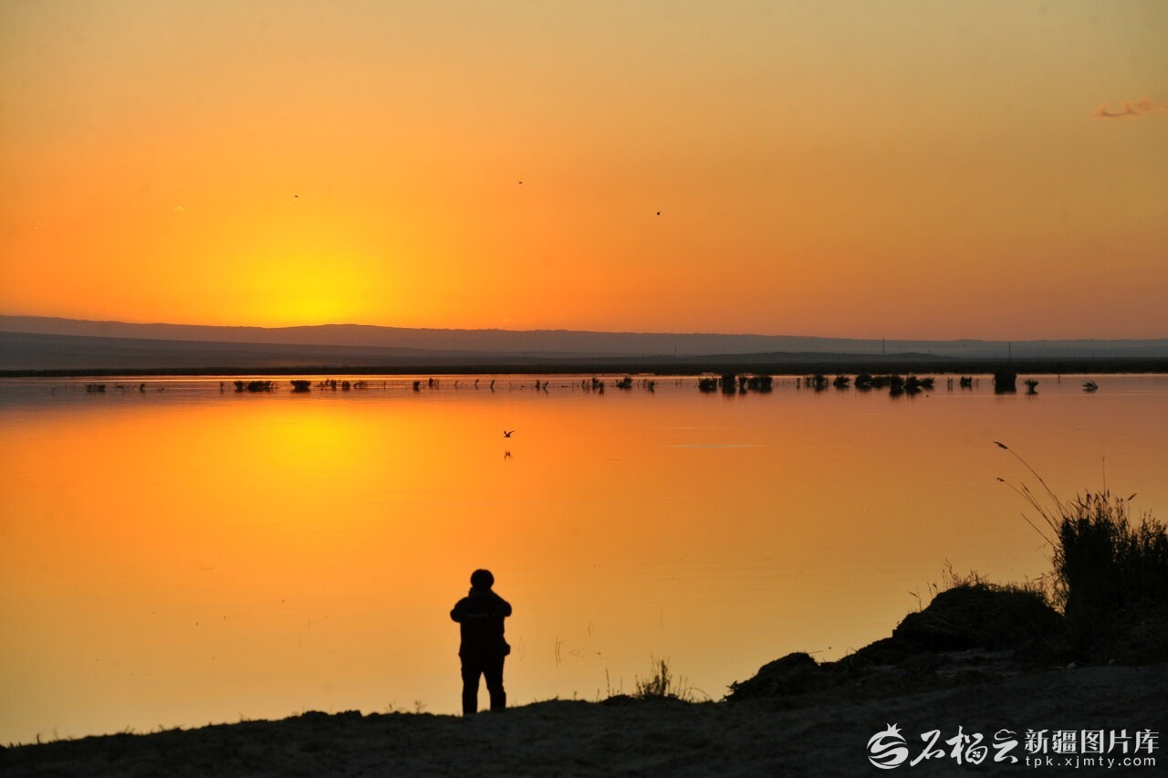乌伦古湖上的落日浪漫