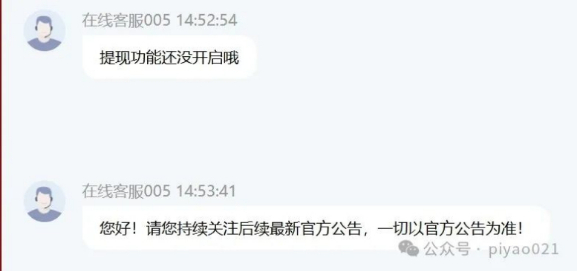 客服对不能提现的解释。