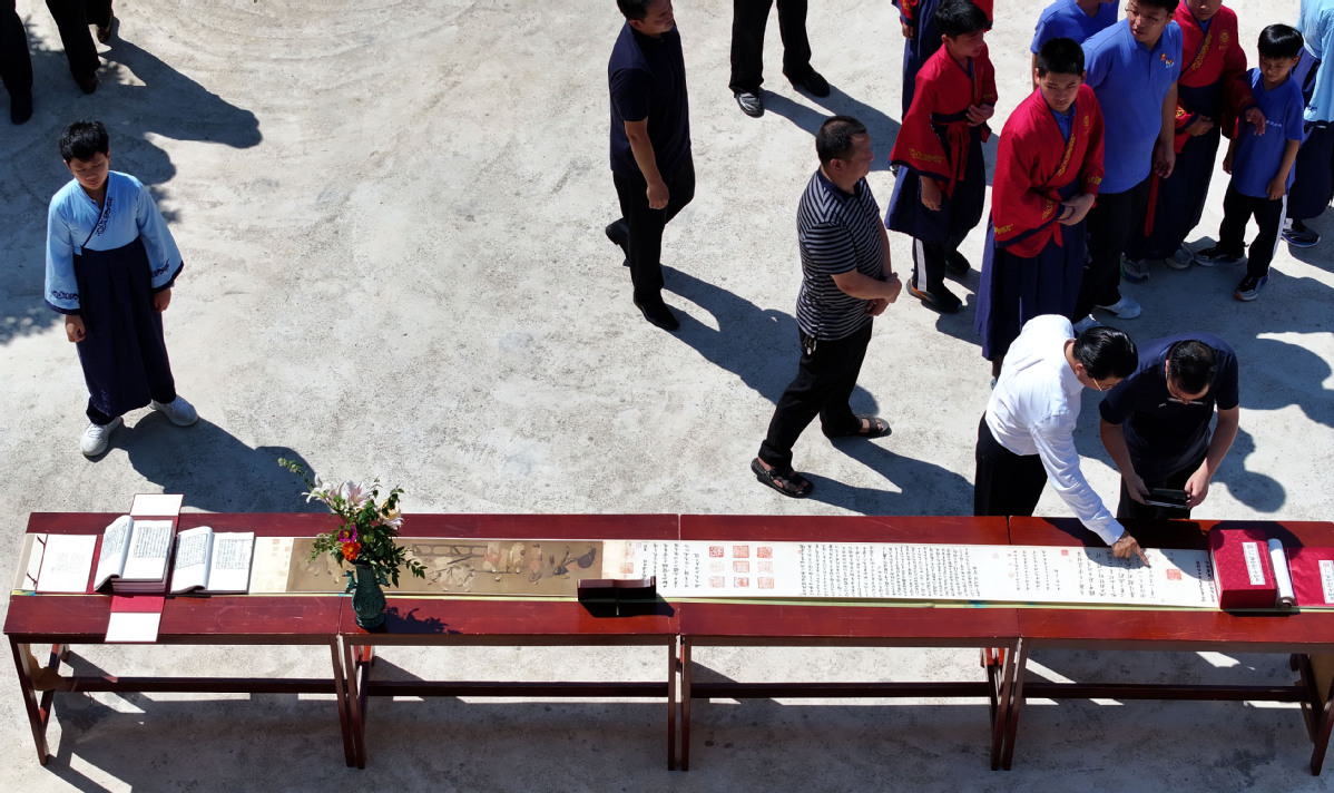 中国日报网湖南娄底电(记者 陆中秋)8月17日,“2025家承文脉・七夕晒书雅集”在新化县温塘镇大坪村道南学堂举行。本次活动以“书香漫卷迎七夕,道南晒书承习俗”为主题,通过主题摄影展、国家级非物质文化遗产梅山傩戏、新化山歌表演等丰富多元的文化活动,体验古时晒书乐趣,让古老的七夕晒书习俗在当代焕发生机。