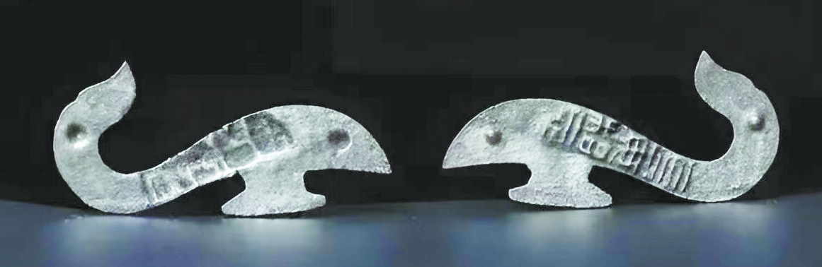 南京博物院收藏的汉代“长毋相忘”银带钩,也是一件充满深情的爱情信物。它出土自大云山汉墓,是江都王刘非送给嫔妃淳于婴儿的定情之物。带钩为龙首形,钩身错金,图案为流畅的圆涡形云气纹,如兵符一般自中间一分为二。两个半扇的内壁,分别以阴阳文刻有“长毋相忘”四字。这动人的情话隐在钩身之间,成为专属于其主人的情意承载。