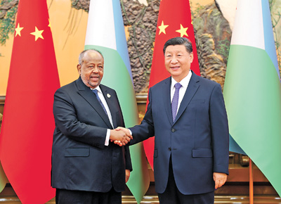 9月2日上午,国家主席习近平在北京人民大会堂会见来华出席中非合作论坛北京峰会的吉布提总统盖莱。新华社记者 鞠 鹏摄