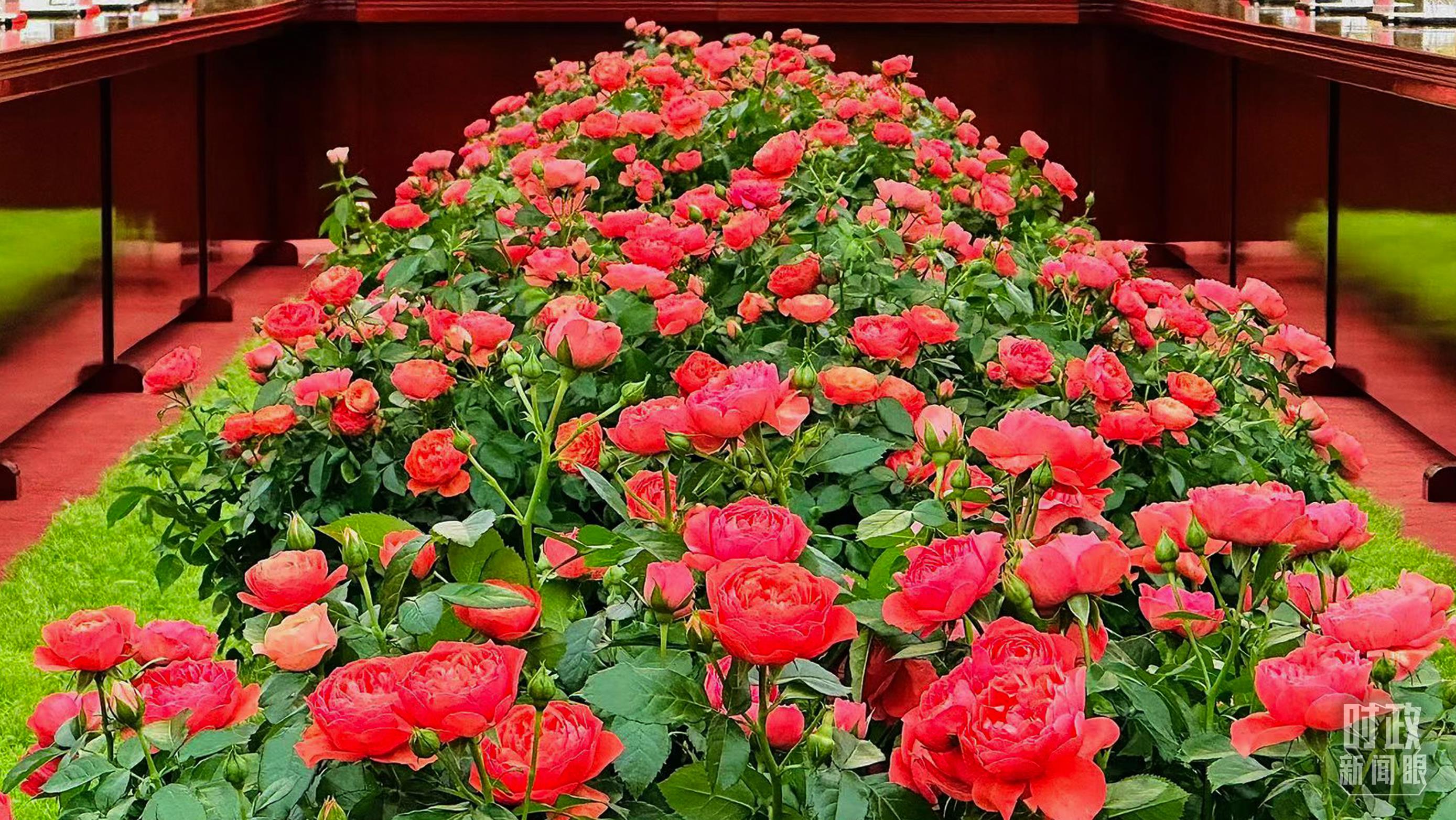 △东大厅会谈桌中间摆放的红果汁月季,象征着蓬勃与坚韧。(总台央视记者范一鸣拍摄)