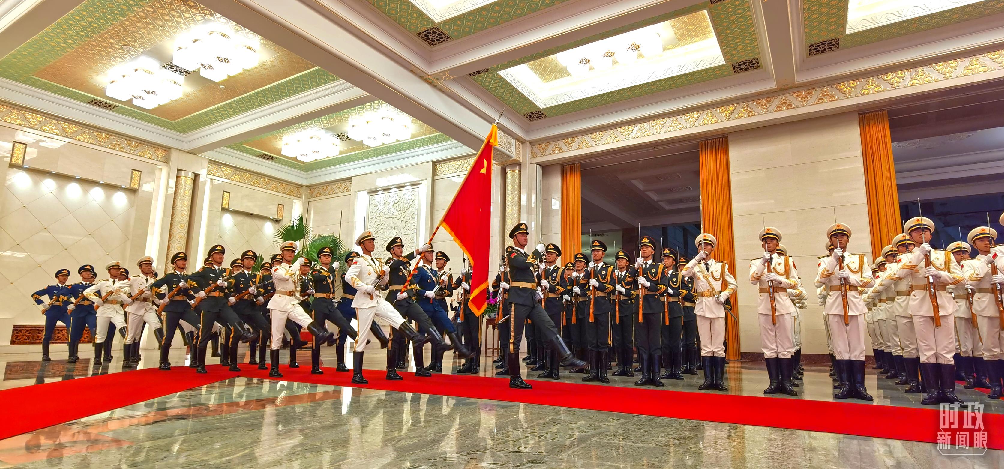 △礼兵列队迎接外宾。(总台央视记者钟锐拍摄)