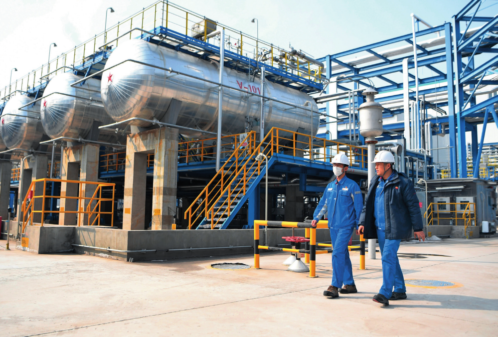 我国西部重要的炼化生产基地——中国石油兰州石化公司坚持把科技创新作为推动企业发展的核心动力,助力老炼化基地不断释放高质量发展潜能。图为兰州石化公司橡胶运行部的生产装置(2023 年 2 月 22 日摄)陈斌摄 / 本刊
