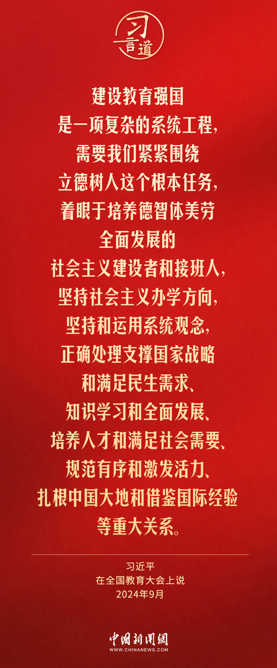 全国教育大会9日至10日在北京召开。中共中央总书记、国家主席、中央军委主席习近平出席大会并发表重要讲话。习近平指出——