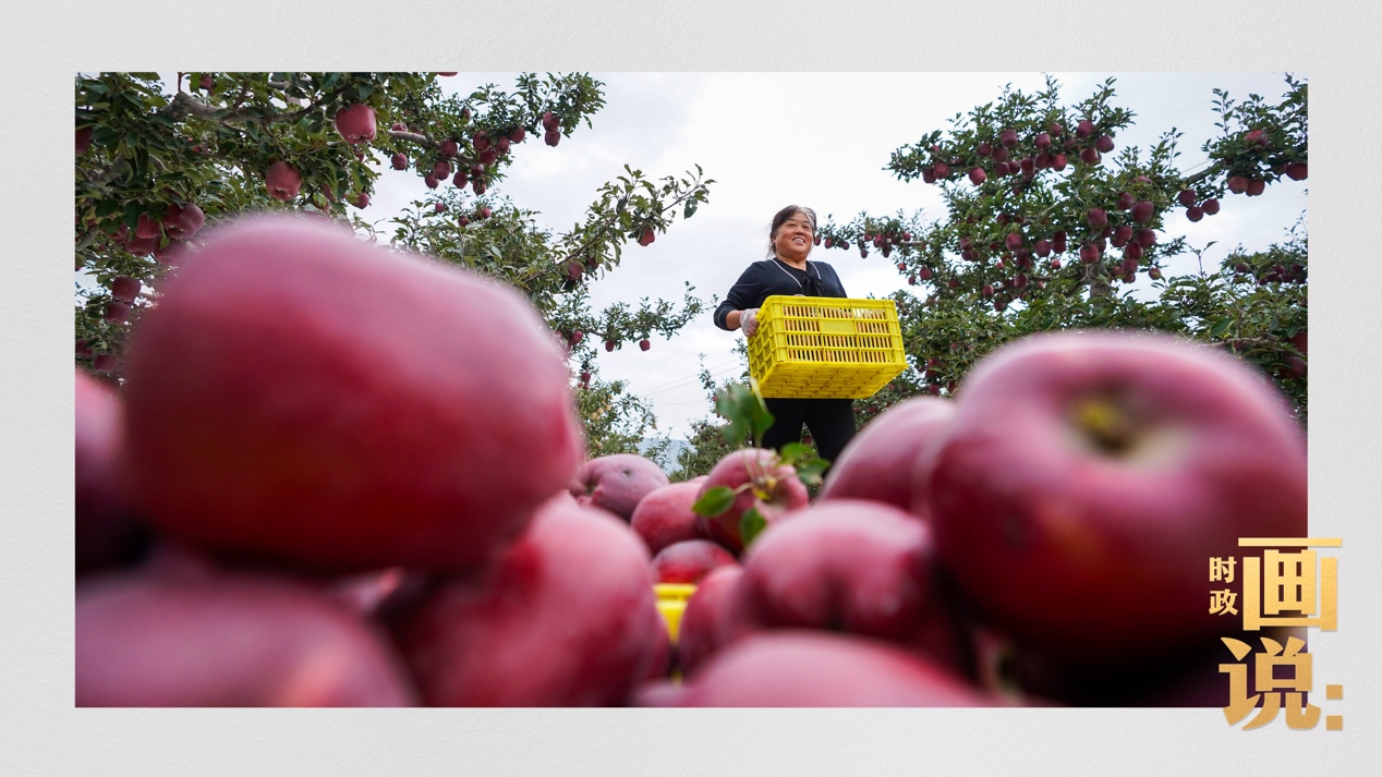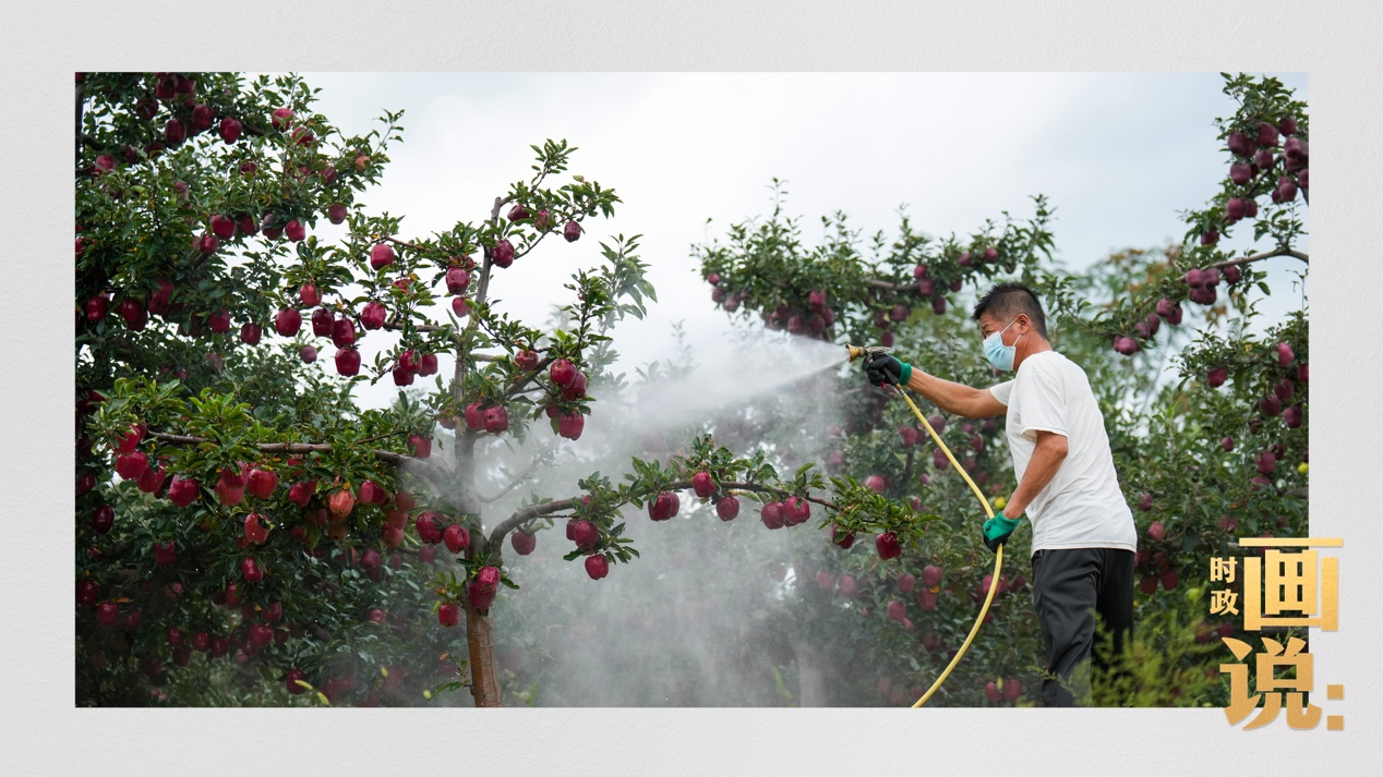 11日上午,习近平总书记来到甘肃省天水市麦积区南山花牛苹果基地考察调研,了解当地发展特色现代山地果业等情况。