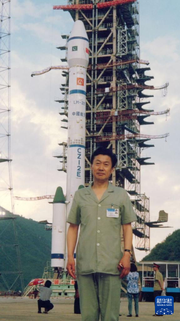 王永志在长征二号捆绑式运载火箭发射前留影。新华社发(资料照片)